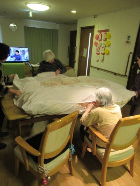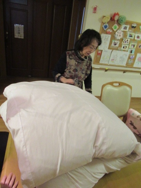 本日は皆さんで協力して掛布団カバーをつけた時の様子です(^^)/