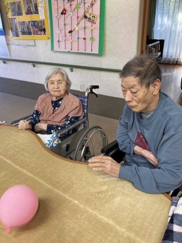 1Fのレクリエーションで風船バレーを行いました。ボールの代わりに風船を使うことで安全に、