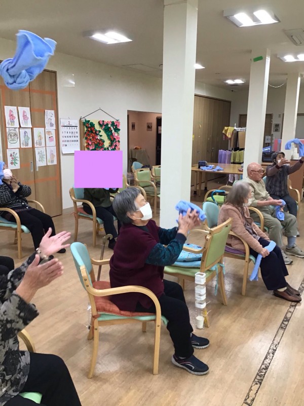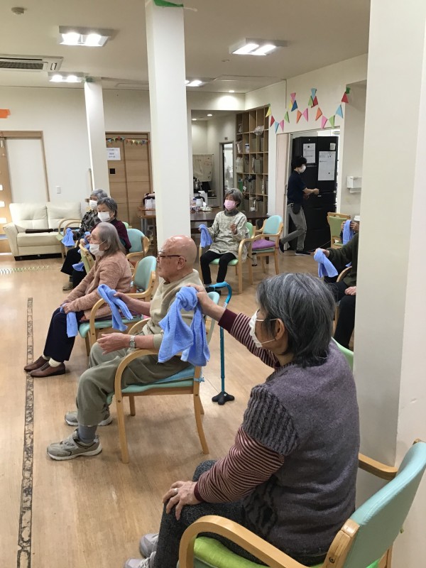 リモートで先生のご指導を受けながらタオル体操を行いました!