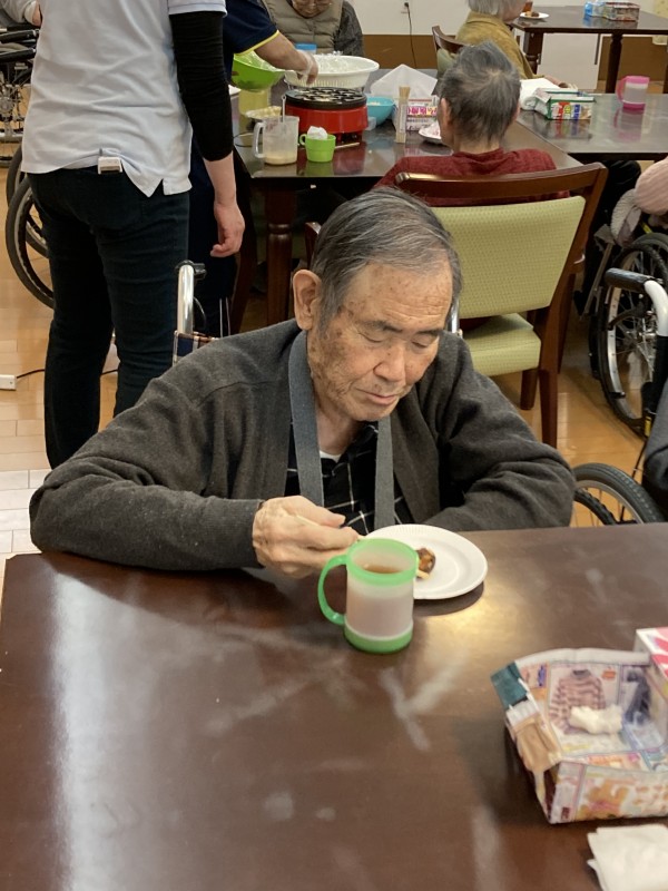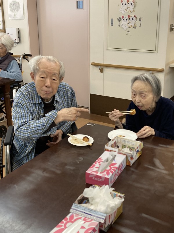ご夫婦で一緒に召し上がっている姿に私たち職員も笑顔を頂きました。3月以降も様々なレクを企画していきます。