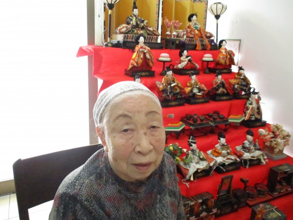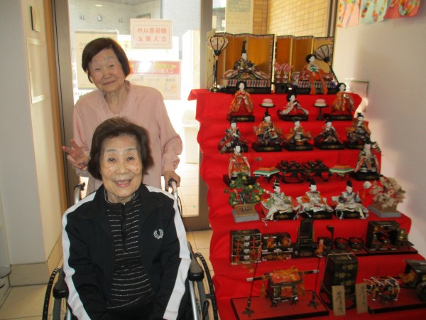 2階の入居者様も見事な雛飾りの前で記念撮影です。