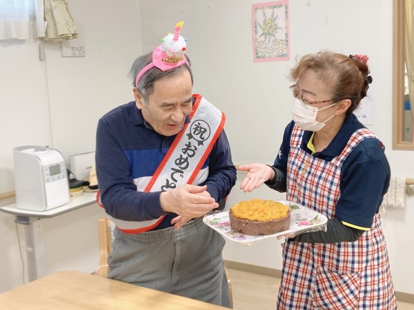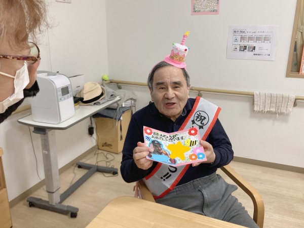 みなさまからはハッピーバースデーの歌、職員からはバースデーカードをプレゼント♡