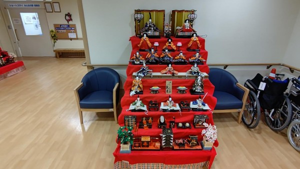 毎年恒例の雛飾りを設置しました!(^^)!なかなか立派な飾りなので