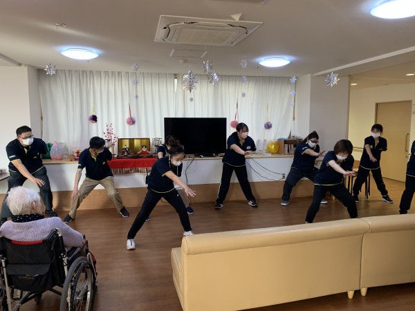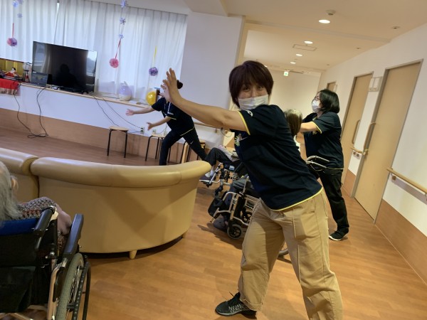 入居者様と一緒に踊りながら