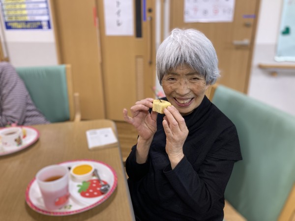 皆さん、「ひな祭り」の曲を合唱したら、昼食のちらし寿司を完食しての、おやつをあっという間に完食♪ 素晴らしい(^▽^)/