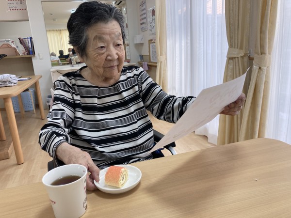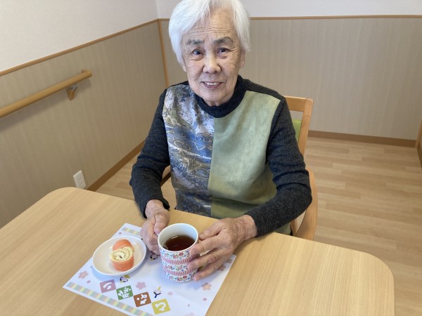 白桃を使ったカスタード風味のロールケーキを敷き紙に載せます。