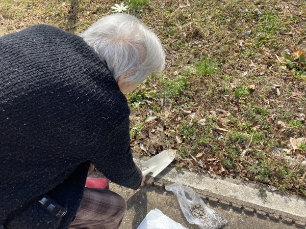 先日、ホームの前の雑草だらけの庭を利用者様と少しだけきれいにしました!