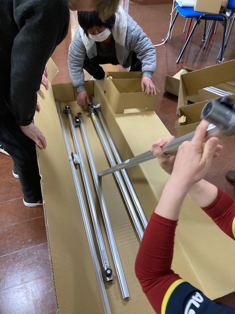 お部屋で設置が困難だったためフロア内で組み立て開始です。