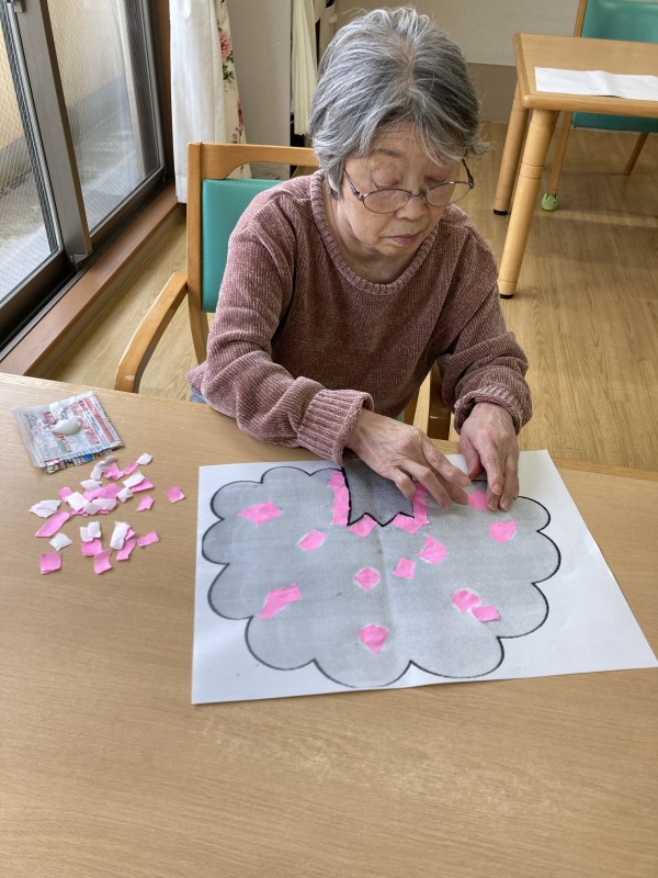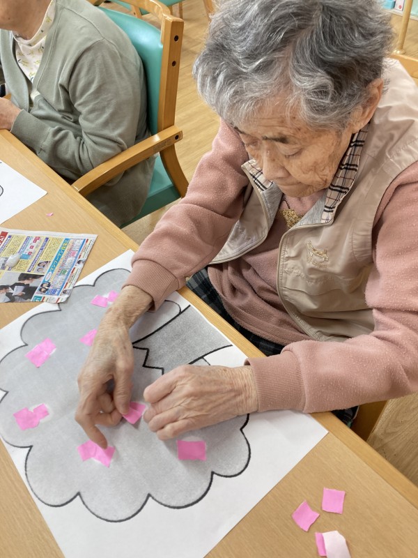 2階では、春の季節に向けて桜の壁画製作をしています。