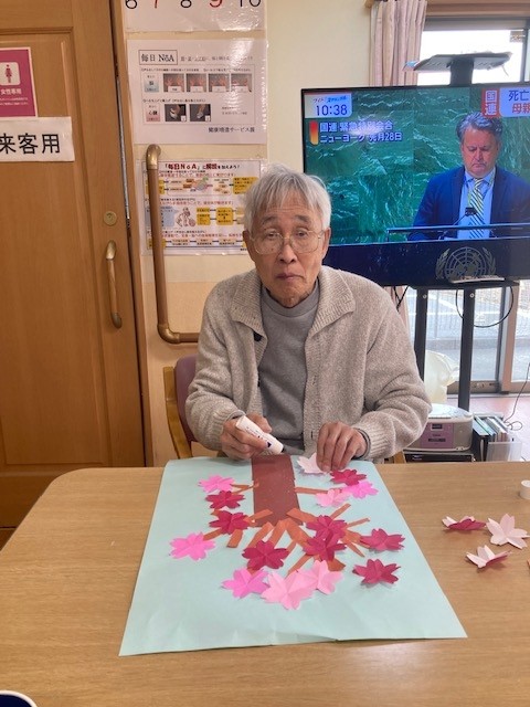 入居者様たちが男女ともに協力して、春にちなんでの飾り作りをしてくださいました(#^.^#)