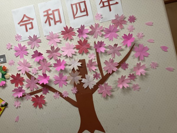 白い桜に色鉛筆やクレヨンで色付けして頂きましたよ~(^-^)