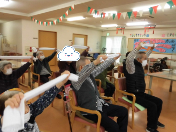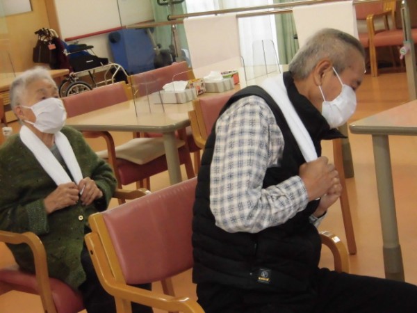 日頃何も持たずに体操を行うことが多いと思いますので、今回タオルを使った体操はいつも以上に刺激を与えたのではないでしょうか?