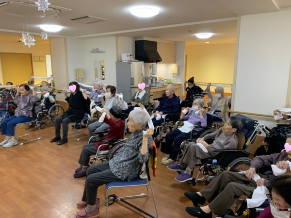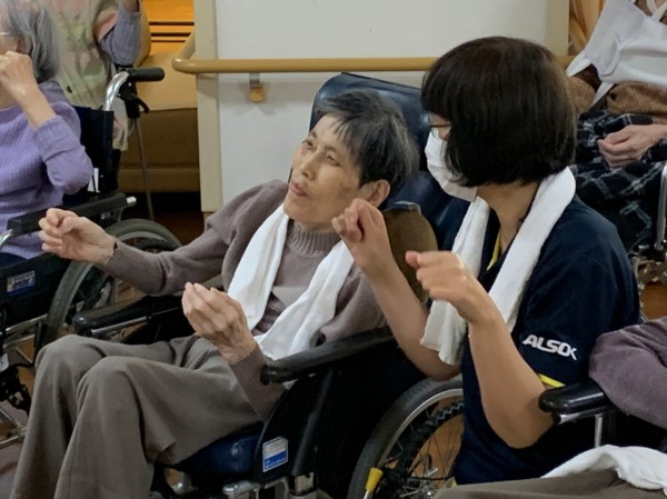 入居者様と一緒に体操の時間を楽しみます