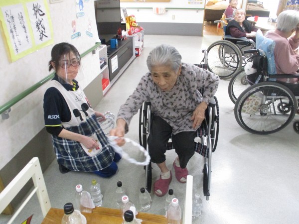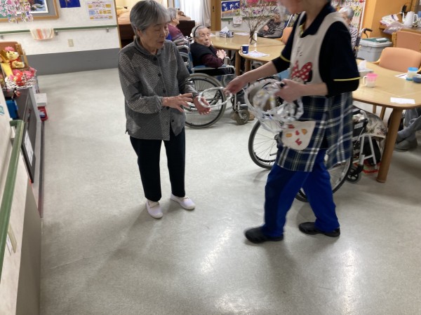 おやつ後には、ひな壇をモチーフにした輪投げを行いました!