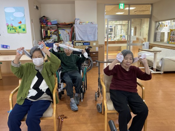 3月8日のリモート運動教室では、タオルを使ったALSOKあんしんヨガに参加しました!!