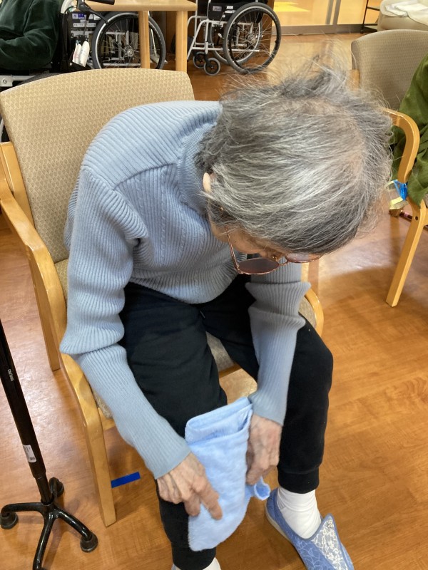 利用者様より「タオル使うの?なんで?」と、疑問の声を聞きつつ…(笑)