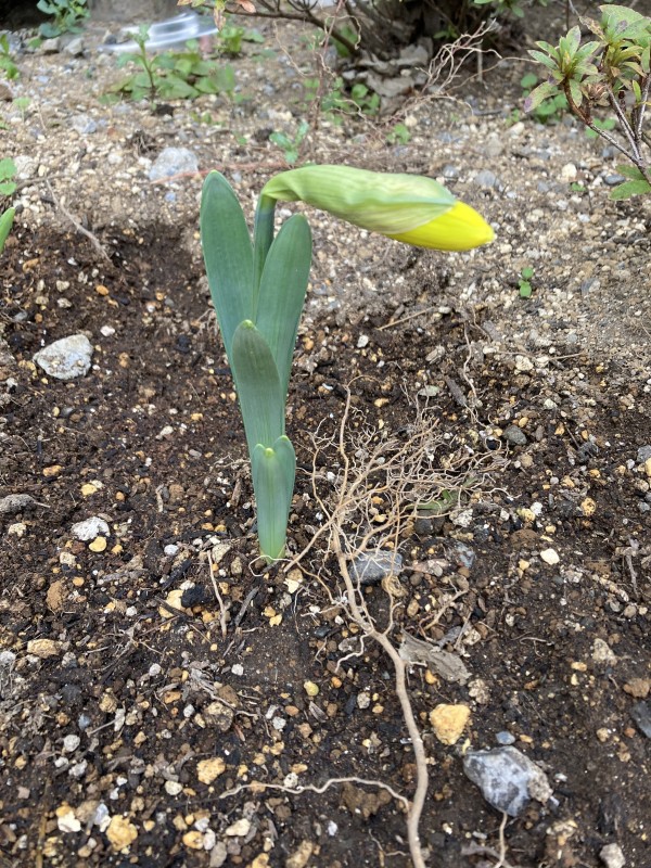 玄関前のスイセンとチューリップ・桃は、あと一歩…といったところでしょうか。