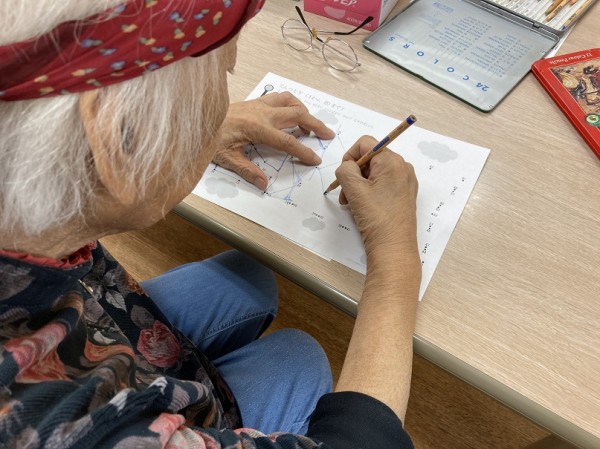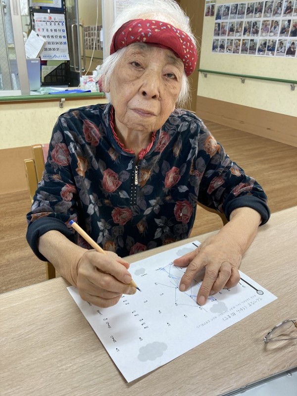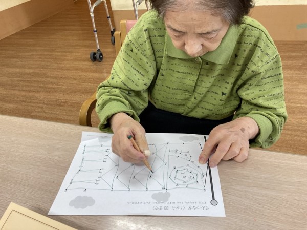点に数字が書かれており、数字の順で線を繋いで行く点つなぎを楽しまれているご様子です。