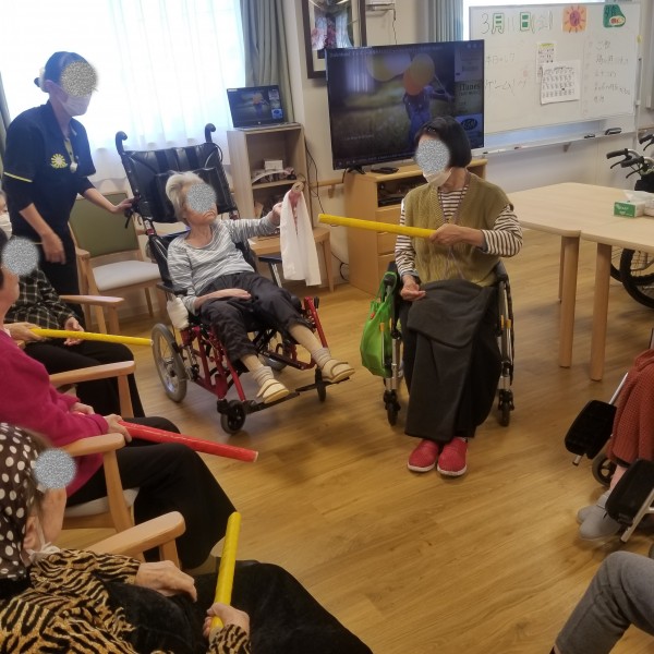 チーム対抗でタオル渡し競争をしましたよ(^^)/