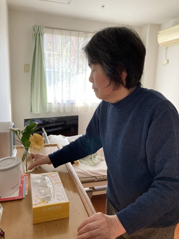 ご自分で生けた花を部屋に飾ろうと持って行かれ…タンスの上の整理整頓もされました。