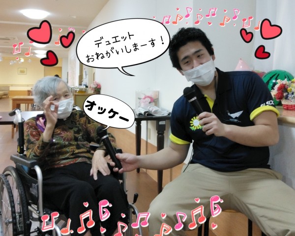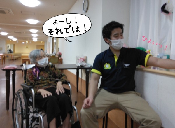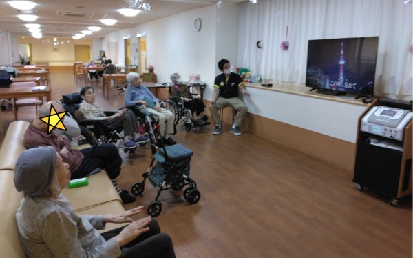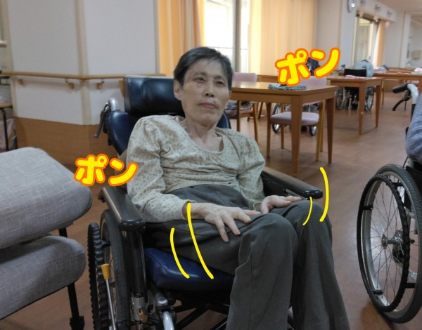 門田ケアスタッフが、膝を叩いてリズムをとると…
