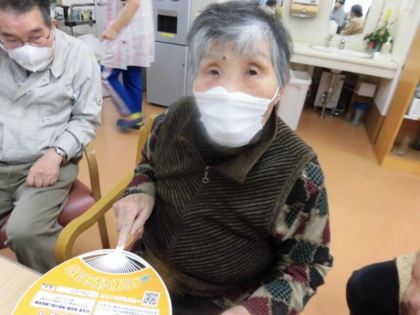 そんな本日の遊蓮田は、新しいレクリエーション「うちわでティッシュ飛ばし」というゲームを行いましたー♪