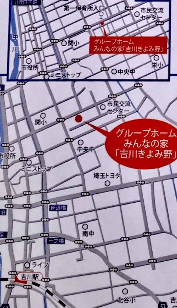 みんなの家・吉川きよみ野の2階の入り口には、パンダの作品が掲示してあります。先日、夕方に訪問すると夕暮れにライトアップされた笹の葉が迎えてくれているような気持ちにさせてくれます。何より職員さんが優しく穏やかなみんなの家・吉川きよみ野(*^^*)働いている職員さんに少しお話伺いました(^ν^)