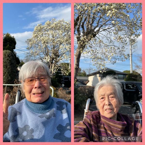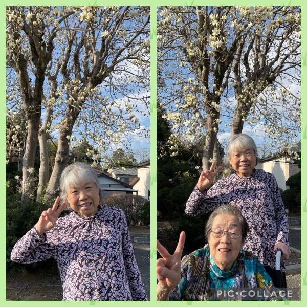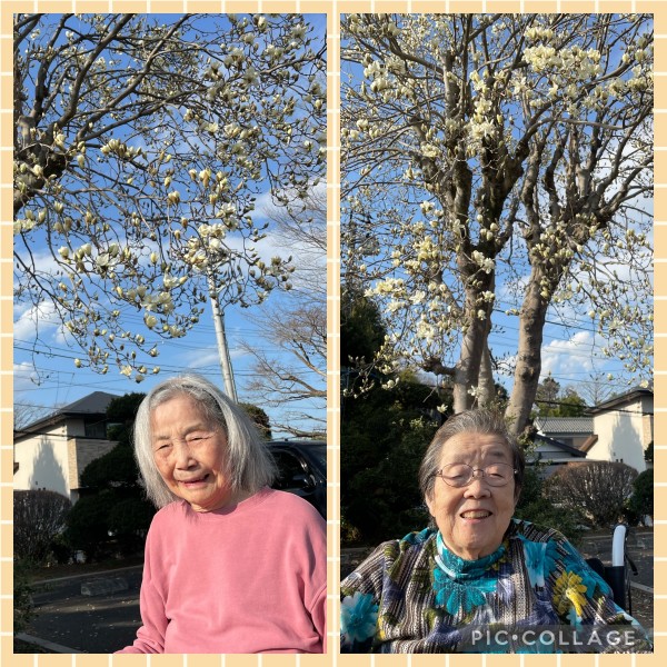 皆さんも白いモクレンの花をご覧になって笑顔がこぼれます。