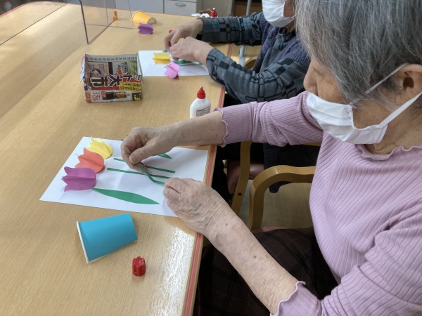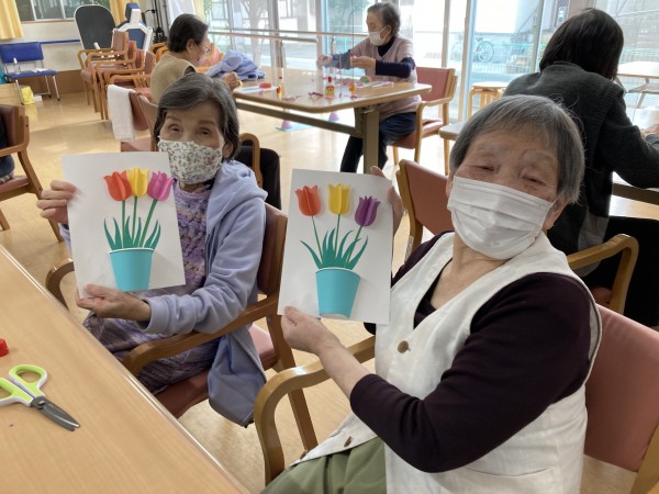 色とりどりのチューリップがきれいに咲きました。利用者様皆さん春の先取りに、とても楽しそうに作っていらっしゃいました。