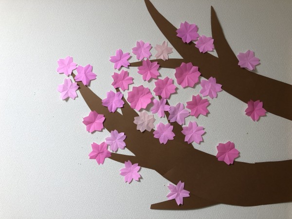 (写真左/上は3月14日にブログ掲載した桜、同右/下は現在の桜です。ご利用者様みなさんで作製されました。)