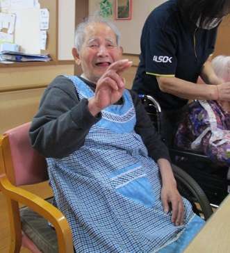 ![]() さすがは主婦大先輩!大変お似合いです♪ | ![]() 主夫も久々のエプロンに、この笑顔! |