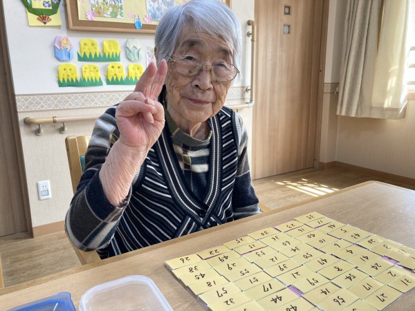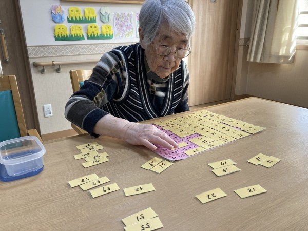 計算パズルに挑戦されて、「できました。」と笑顔で答えて下さいました。