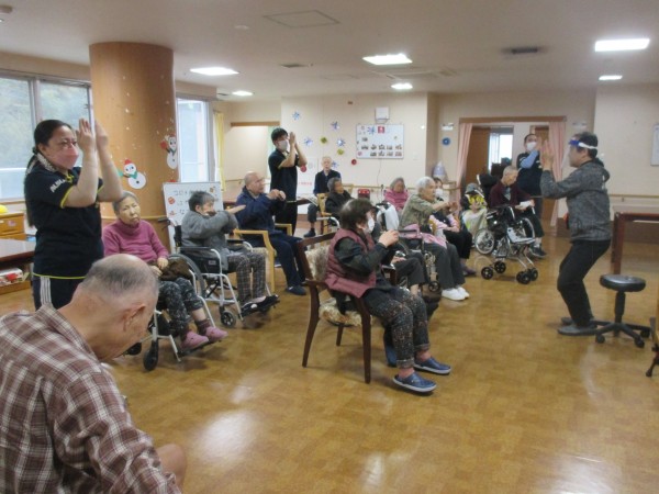 ご利用者様や職員も、指の体操や足上げの体操に、真剣に取り組まれていました(*'▽')。