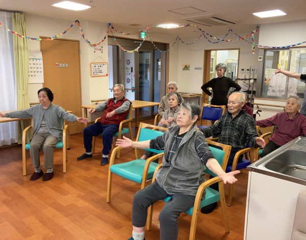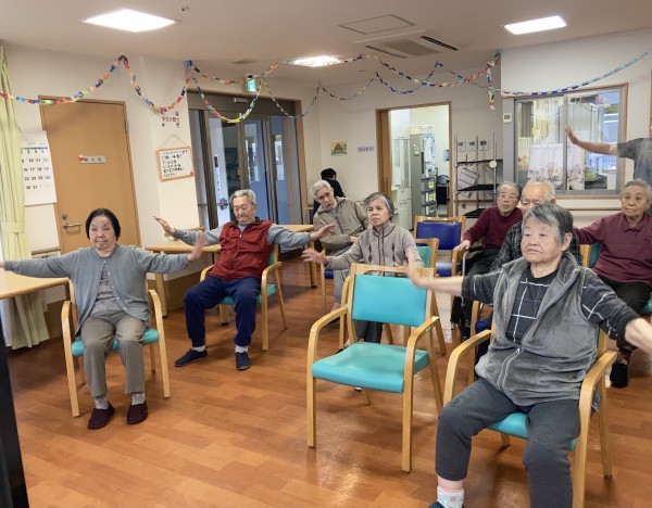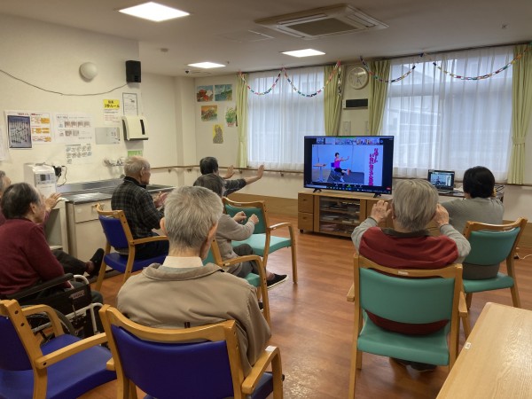 リズムに乗って楽しく体操ができました♪利用者様だけでなくスタッフも一緒になって楽しむことができました!