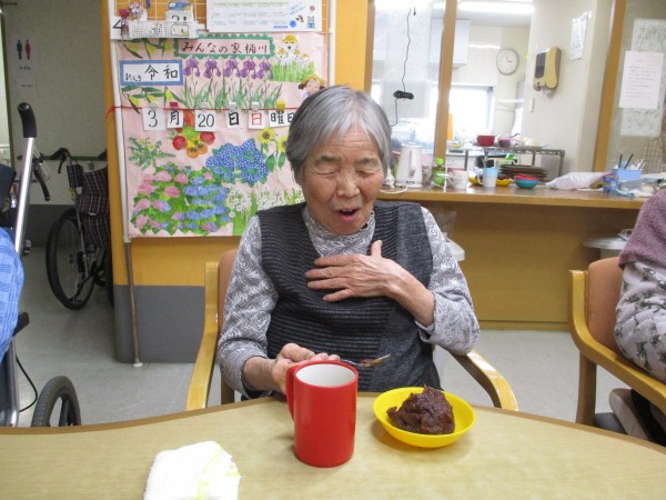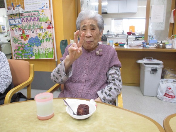 「ぼた餅の会」とのことで、おやつ時にぼた餅を食べました!