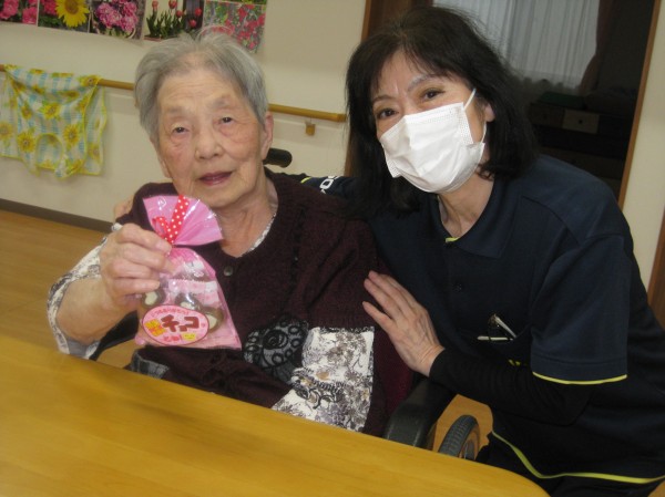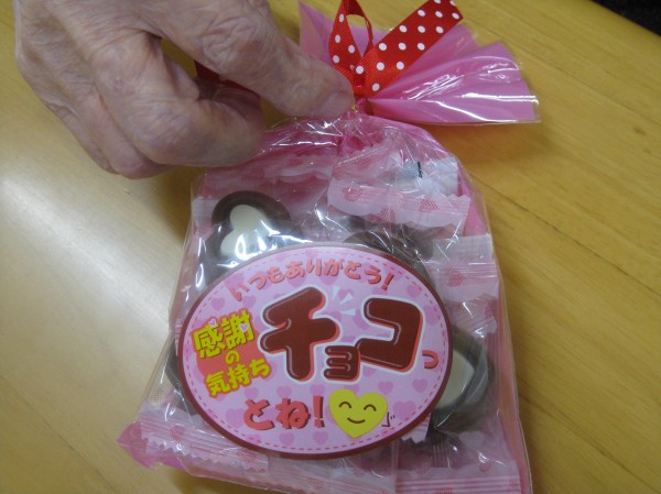 こんにちは!グループホームみんなの家・あきがせの介護ブログです!よろしくお願いいたします。お孫様からチョコレートのプレゼントに感激されていました!(^^)!