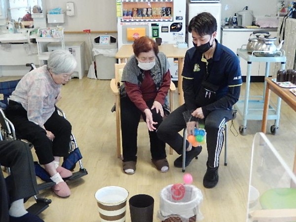 大・中・小の3つの的に向かって上手く投げ入れます‼