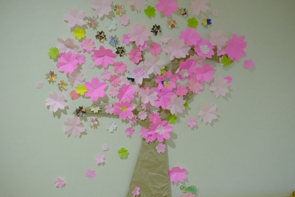 当施設の壁に桜の花❀をたくさ~ん咲かせてみましたぁ(≧▽≦)