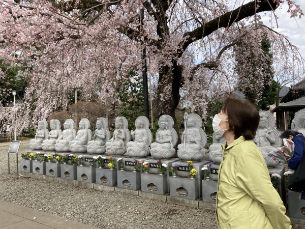 少し歩いたところにある「宝鐘寺」には、もうすぐ満開になる枝垂桜が…