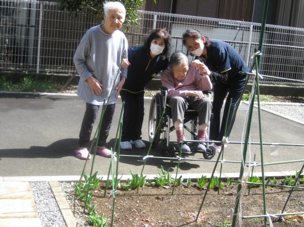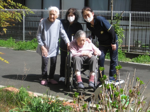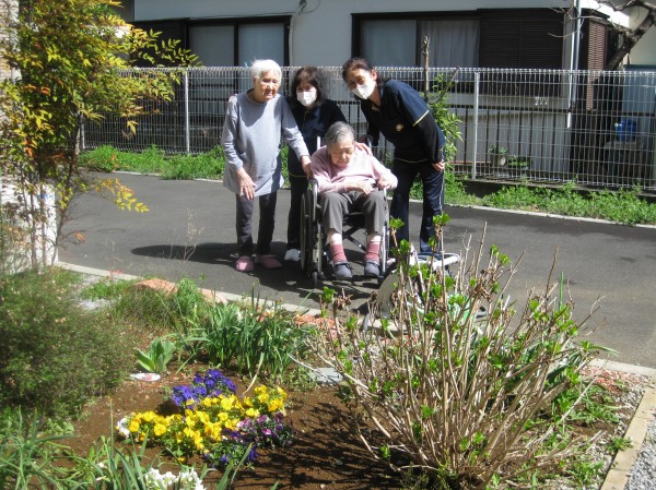こんにちは!グループホームみんなの家・あきがせの介護ブログです!よろしくお願いいたします。施設の花壇まで散歩に出かけました!!