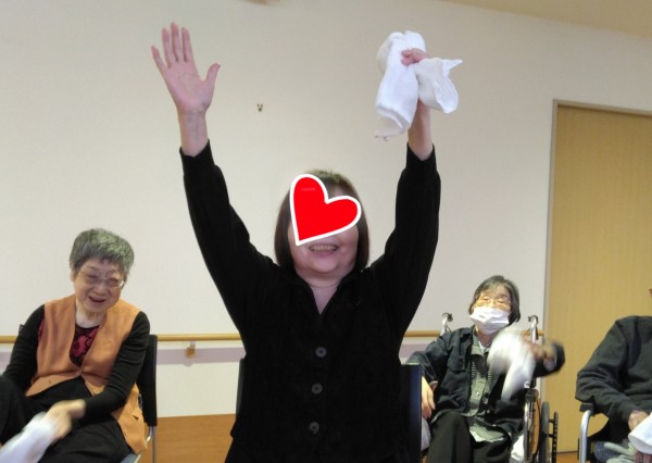 安全で簡単な、道具を使った運動です。遊びの要素も取り入れるので、皆様楽しく参加されます。