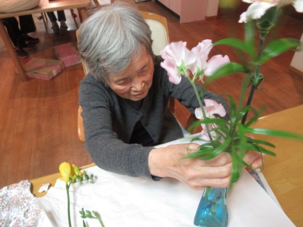 お花を前に慣れた手つきで生けて下さいました(^^)