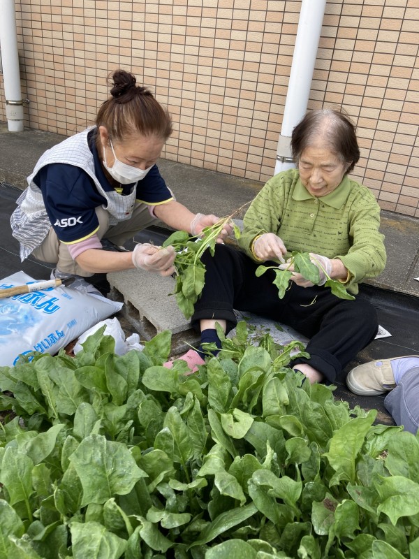 本日はご利用者様とご一緒に、畑のほうれん草収穫を行わせて頂きました。