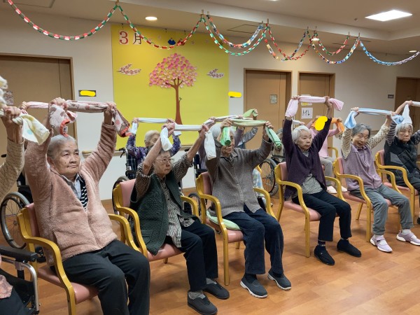 行われているタオル体操の様子をどうぞ。