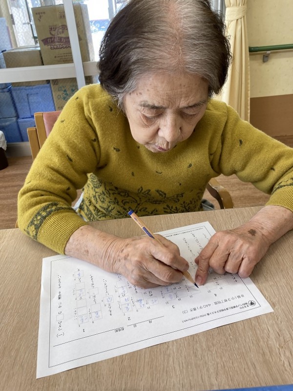 桜の撮影後ホームに戻りますと、皆様は漢字ドリルを楽しんでおられ