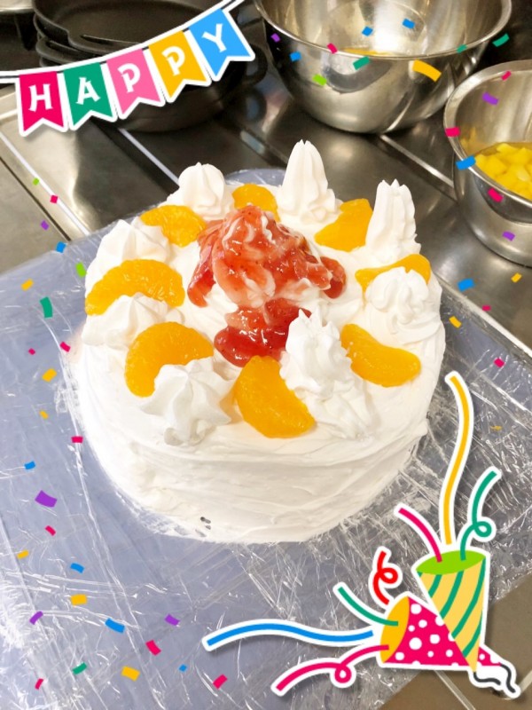 ケーキの中にはホイップクリーム・桃・イチゴジャムが入っていて