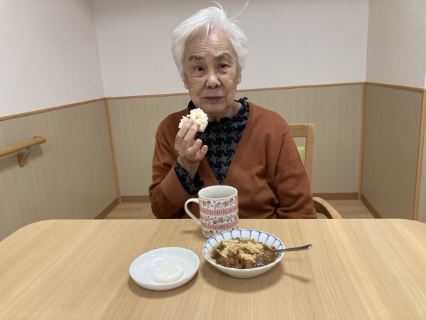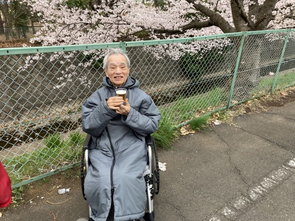 お待ちかねのお花見食はホームの暖かい中で召し上がられました。