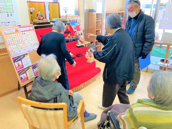 お雛様方が手にする道具など入居者様も職員も悩みながらなんとか完成いたしました(´^ω^`)
