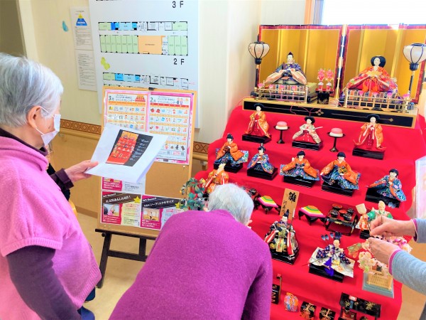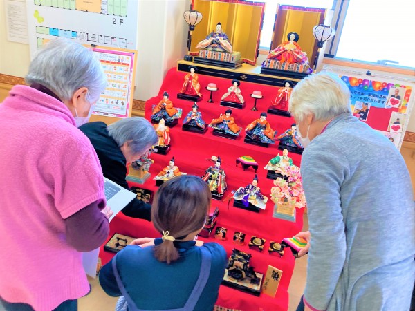 大きな雛飾りを入居者の皆様と一緒に飾りつけを行いました( *¯ ꒳¯*)