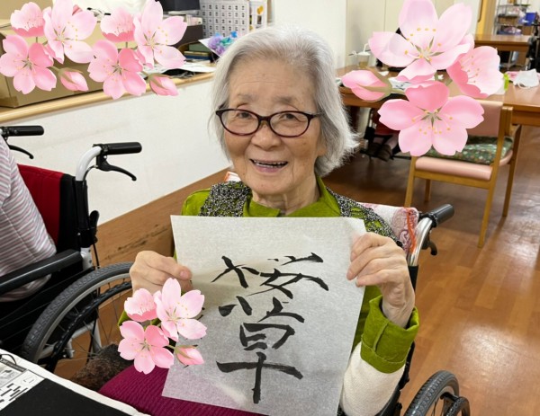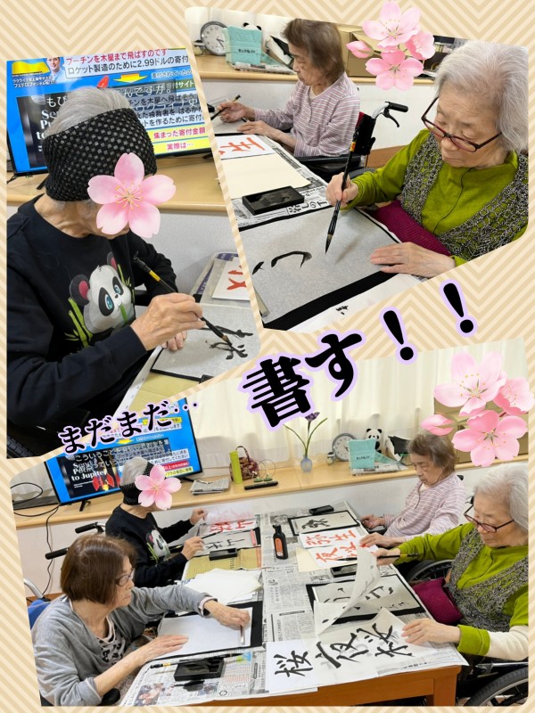 こちらのフロアでも、春の書道を行いましたよ♪